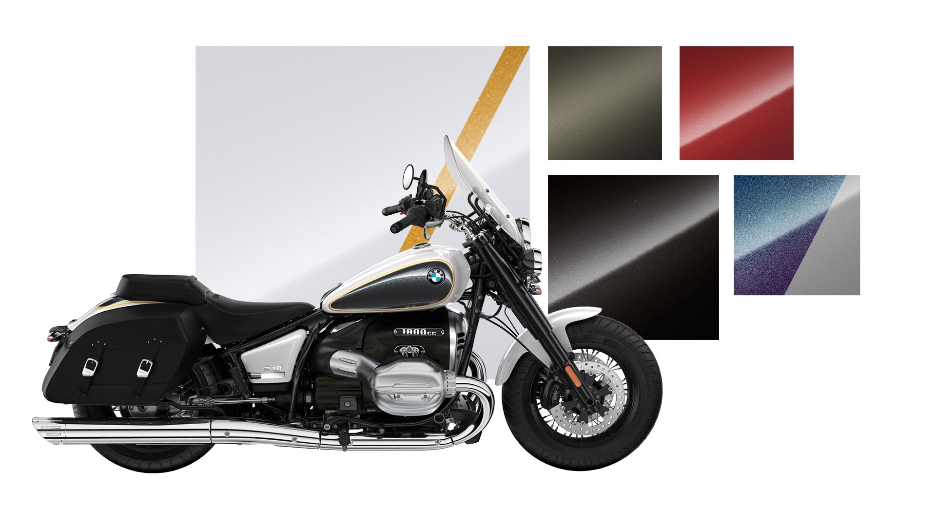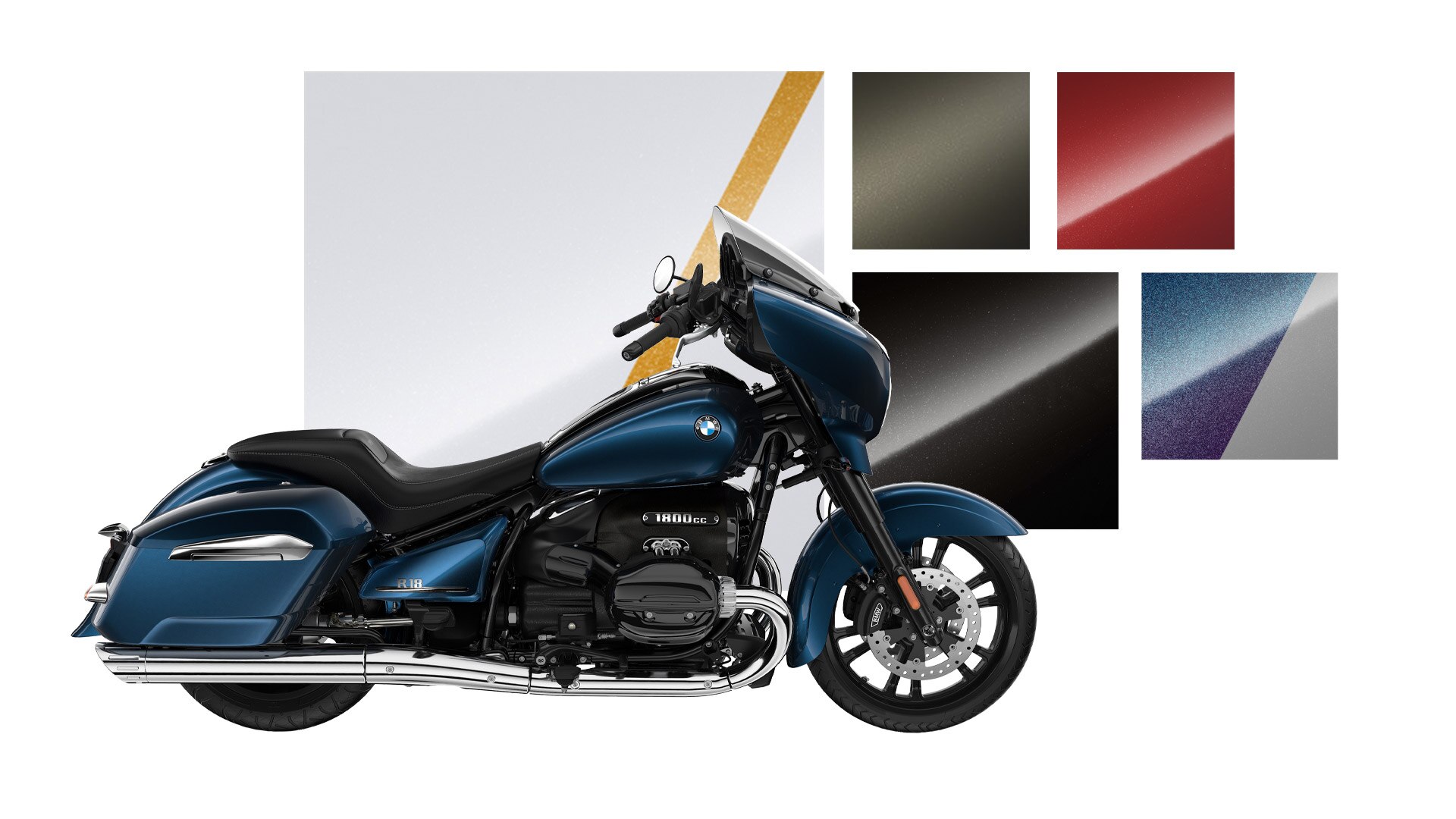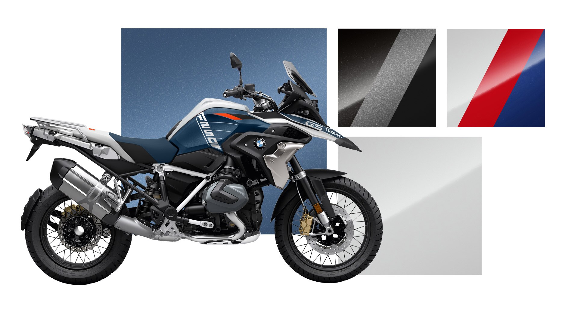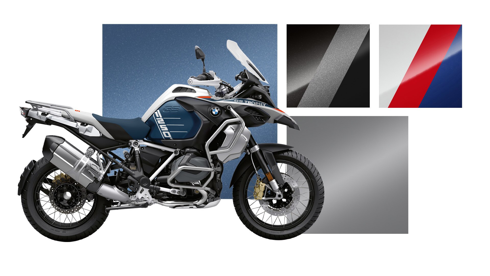 Option 719 Mineral white metallic uwydatnia duże powierzchnie danej maszyny i podkreśla jej elegancki wygląd. Złote akcenty precyzyjnie podkreślają najważniejsze elementy motocykli. Harmonijny, wyważony, atrakcyjny: Kolorystyka Gravity blue metallic sprawia, że maszyna emanuje prawdziwą wielkością i niezależnością.