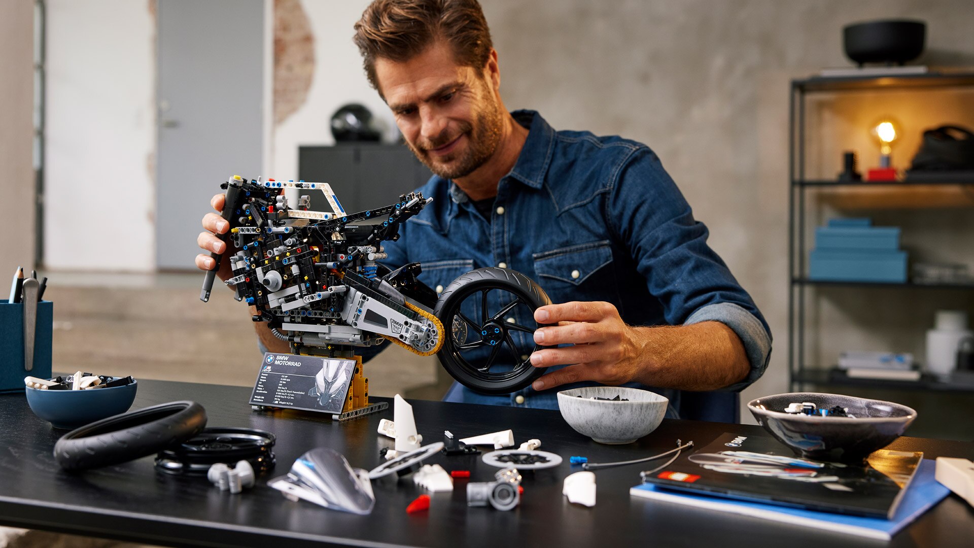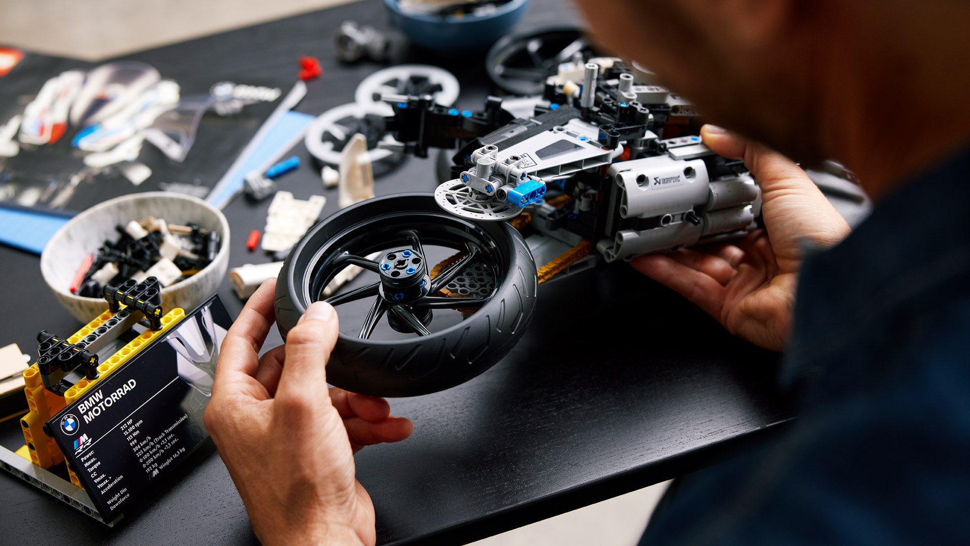 Fascynacja oryginałem stanowi dla Ciebie siłę napędową. Czujesz pasję. Dla Ciebie liczy się każdy szczegół, każdy milimetr, każda cecha techniczna. Kochasz to i możesz przeżyć to uczucie na drodze, na torze wyścigowym, a teraz wreszcie w domu: W ścisłej współpracy z projektantami LEGO® Technic powstał największy dotychczas model motocyklowy LEGO® Technic i pierwszy model M LEGO®: LEGO® Technic M RR w skali 1:5. Zadanie było jasne – największa precyzja, aby zrobić to, co do tej pory było niemożliwe. Jeśli części nie spełniały przy tym surowych wymagań, zostały zmodyfikowane. Tak jak w przypadku oryginału. Ponieważ właśnie na tym to polega: Born on the racetrack. Build at home.