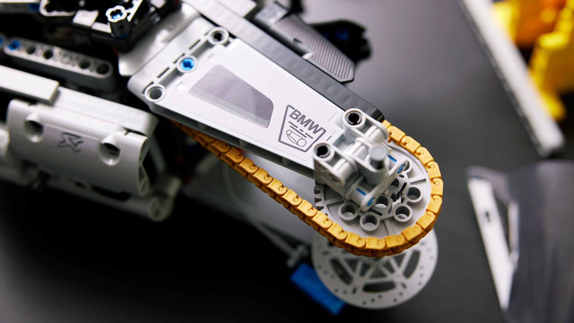 Skala 1:5 była prawdziwym wyzwaniem dla projektantów. Jednak dzięki niej można było odzwierciedlić precyzyjnie jak nigdy dotąd linię, wymiary, kąty i elementy konstrukcyjne charakterystyczne dla M RR: Każdy element powinien znaleźć swoje odzwierciedlenie w oryginale – aż po części karbonowe i części frezowane ekskluzywnego pakietu M Competition. Samo zawieszenie osi przedniej i tylnej waży 1,4 kg. Prawdziwa sztuka inżynieryjna, w ramach której skonstruowano nowe elementy LEGO® Technic. Również felgi, tarcze hamulcowe i szyba są specjalnie wykonanymi elementami, które zostały dokładnie przetestowane przed ich użyciem w produkcji seryjnej. Zupełnie jak w przypadku prawdziwego M RR.