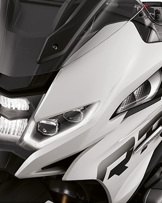 Kompaktowy i smukły: przód R 1250 RT jest elegancki i obejmuje reflektory LED. Wraz z bardziej kompaktowym korpusem tworzy to dynamiczną jednostkę z jedną wyraźną zaletą: jeszcze większym polem widzenia. Nowa przednia szyba ma imponujący, opatentowany kanał powietrzny: ssanie do przodu i ruch powietrza w górnej części korpusu są zmniejszone, dzięki czemu możesz kontynuować jazdę w całkowitym odprężeniu nawet po wielu godzinach na rowerze. Dwuczęściowa osłona przedniego koła podkreśla również kompaktowość, wspomaga aerodynamikę i zmniejsza zabrudzenia na Tobie i Twoim rowerze - zwłaszcza podczas deszczu.