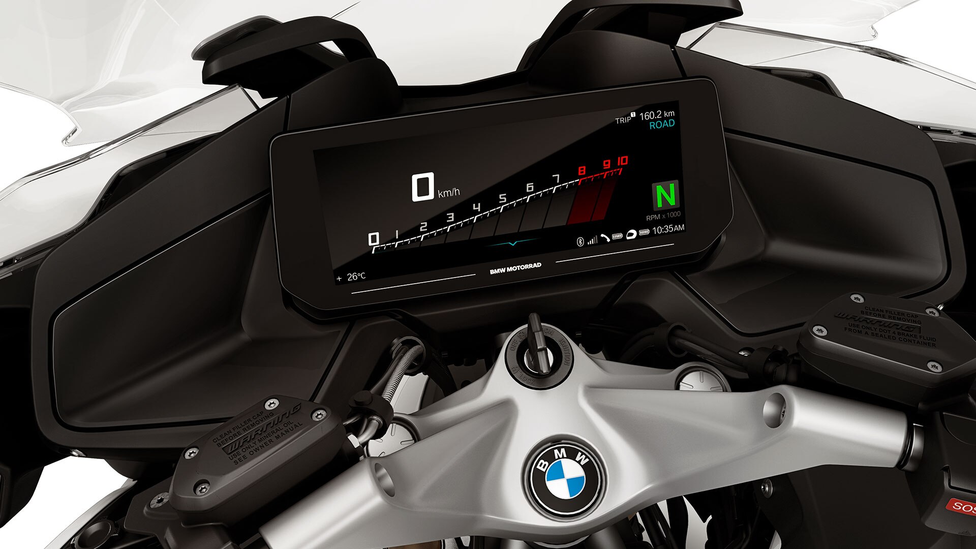 Więcej miejsca, większa przejrzystość, lepsza widoczność: nowy, duży ekran TFT o przekątnej 10,25 cala łączy w sobie wszystkie instrumenty modelu R 1250 RT, a także praktyczne funkcje, takie jak nawigacja i łączność. Podzielony ekran zapewnia przegląd kilku funkcji jednocześnie czas, na przykład wyświetlanie komputera pokładowego oprócz aktualnej prędkości.Kolorowy wyświetlacz zapewnia dodatkową ostrość i kontrast dzięki wytrzymałej, hartowanej i nieodblaskowej osłonie szklanej.Twój ekran jest więc czytelny nawet w południowym słońcu a dzięki powłoce zapobiegającej odciskom palców pozostaje taki.