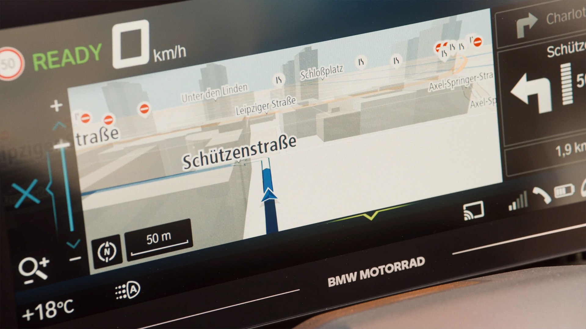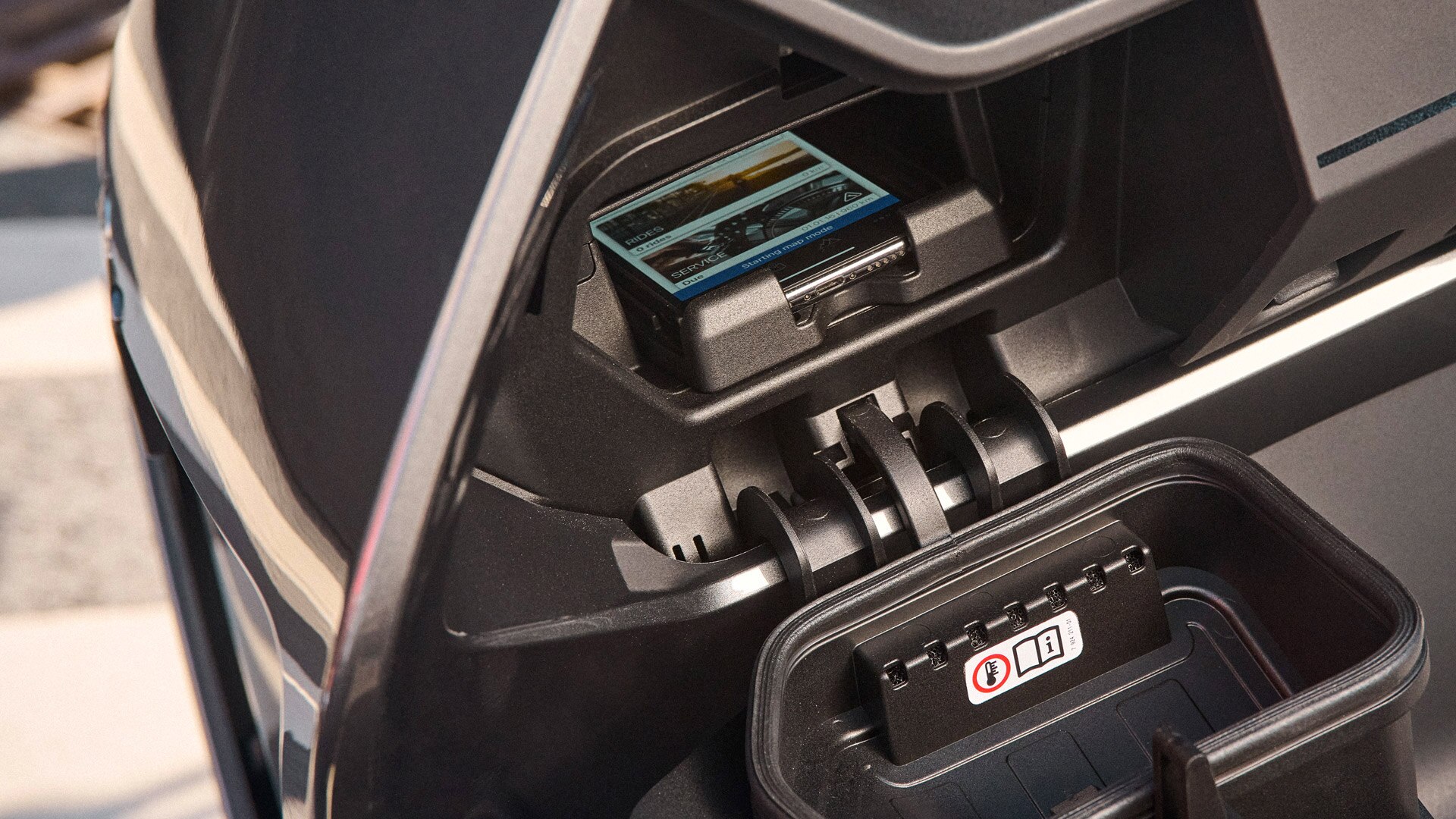Zawsze bądź na bieżąco, trzymaj rękę na pulsie i ciesz się życiem. BMW CE 04 zapewnia płynne połączenia dzięki BMW Motorrad Connectivity i aplikacji BMW Motorrad Connected. Wyświetlacz TFT o przekątnej 10,25 cala z opcją podziału ekranu stanowi interfejs między światem cyfrowym i analogowym. Niezależnie od tego, czy chodzi o dane dot. wydajności, zasięg, czas ładowania, czy ulubioną listę odtwarzania, następny cel lub rozmowę telefoniczną: mobilność i komunikacja tworzą jedność. Tak jak Twoje życie codzienne. Możesz umieścić smartfon w wodoodpornym i wentylowanym schowku i natychmiast go naładować dzięki złączu USB-C.